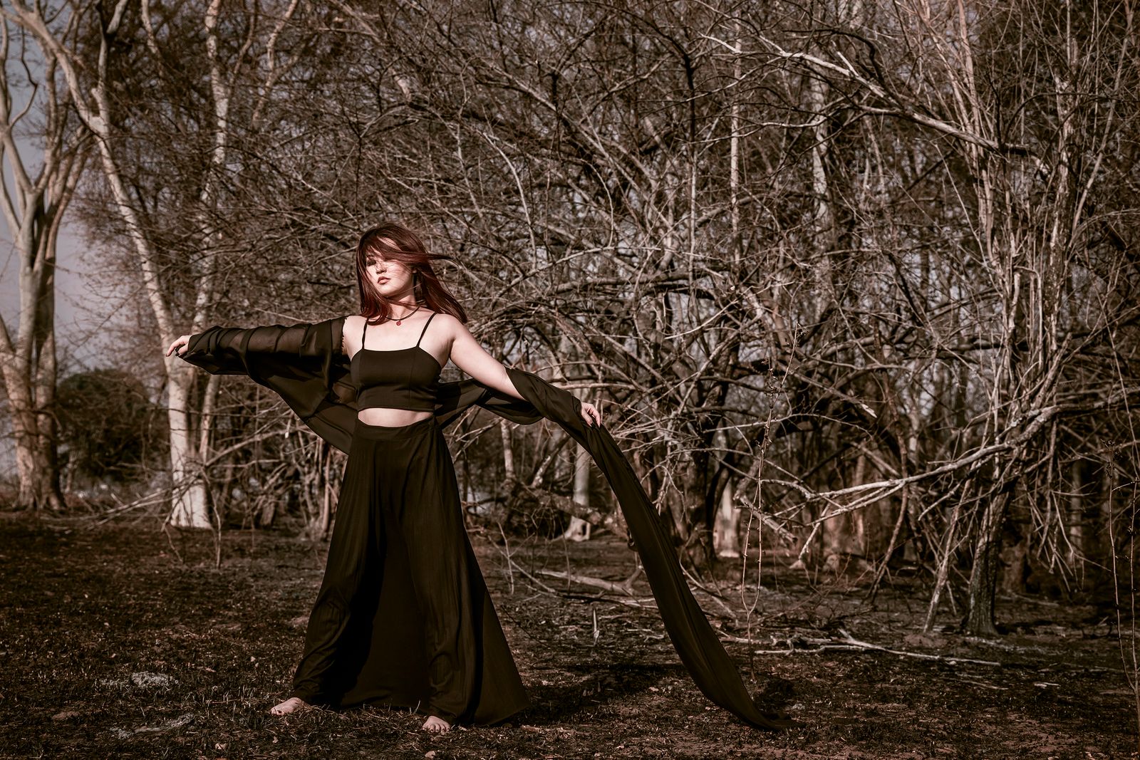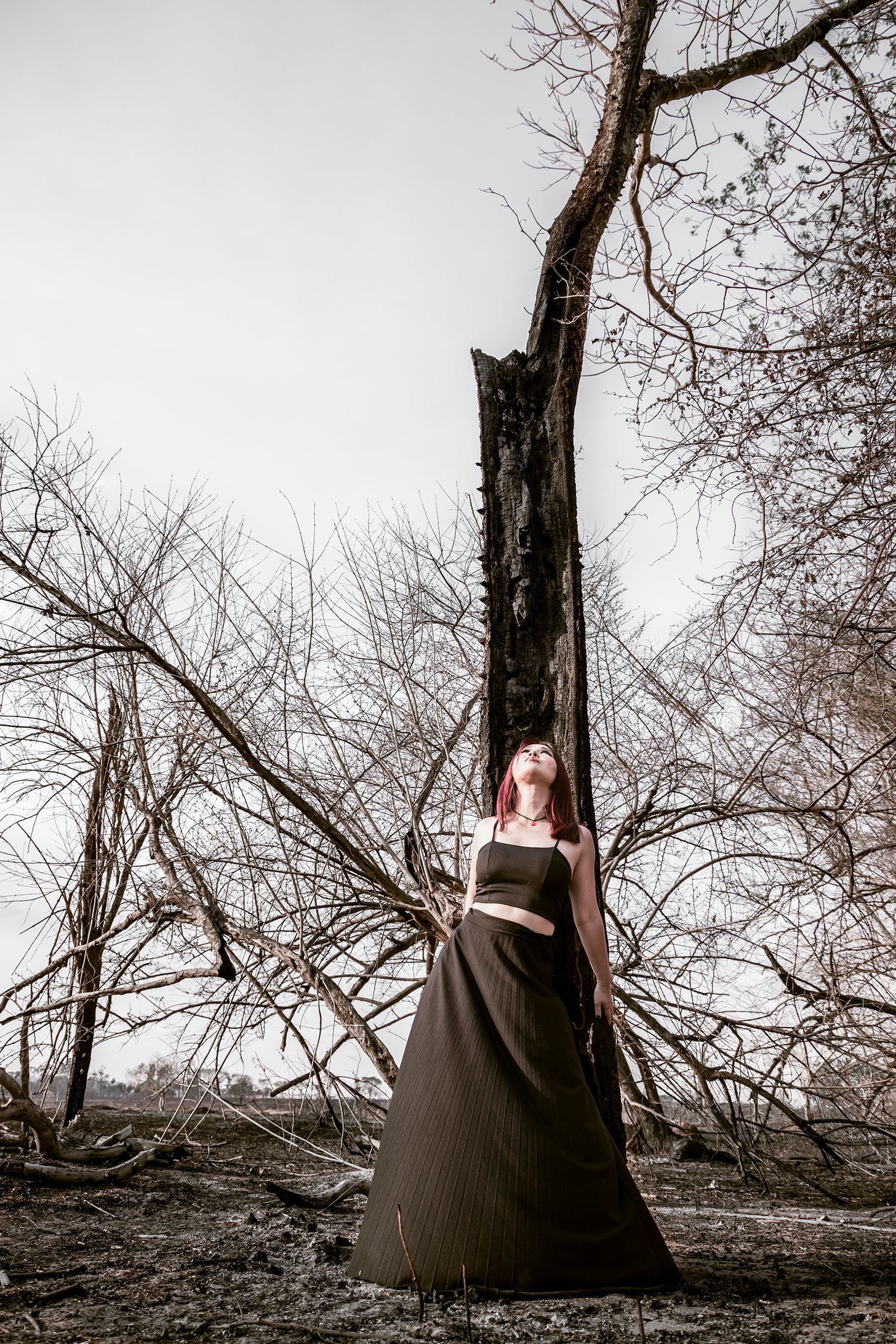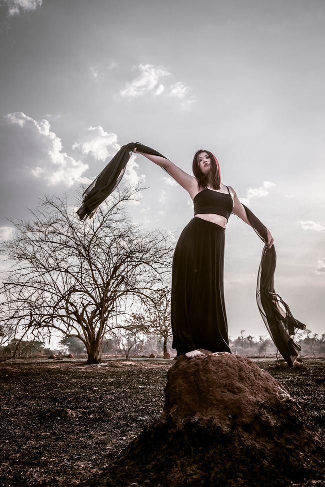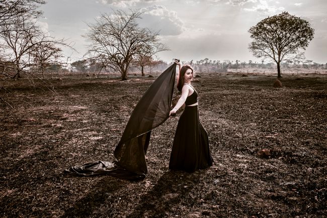 This photo shoot took place in São José do Rio Preto, the city where I live, a few days after a historic fire in the city's forest. I intended to poetically portray some of the burned areas in order to report and raise awareness on the subject, relating the man's connection and responsibility over the burnt nature.