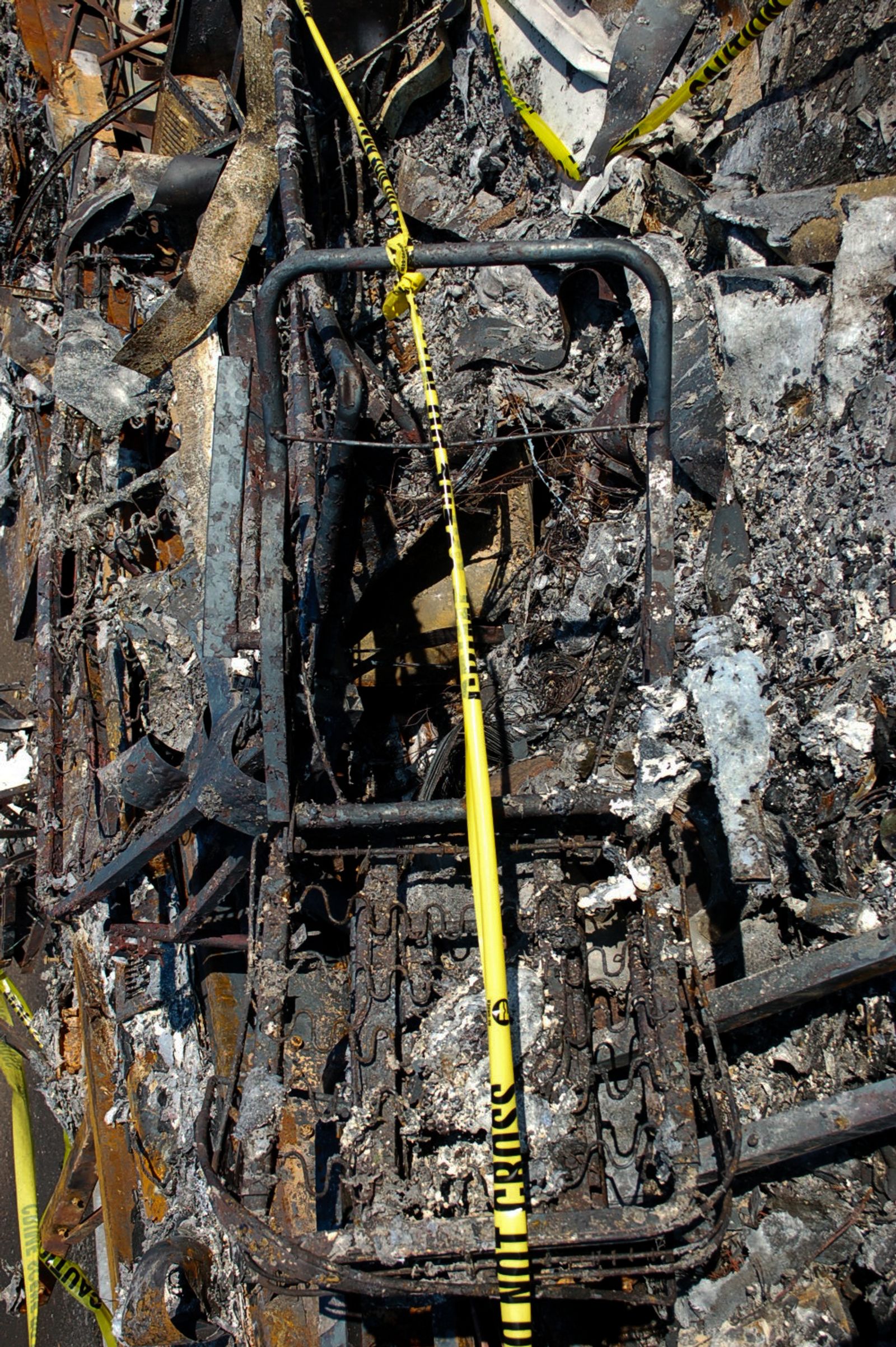 © Erin McMillen Gustafson - Yellow police tape cordoned off the remains, the fire long since subdued.