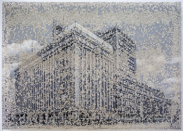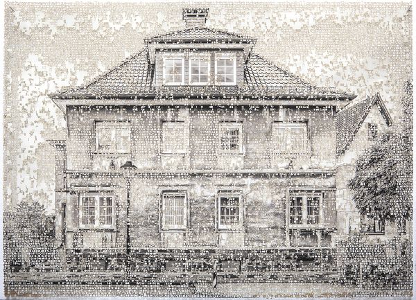 I merge these painful accounts with the photographs through a process of burning(laser cutting), an echo of the traumas of war the refugees had endured. The works are a merge of text and image, where the words of the refugees form the complete image. Eventually made entirely of lace-like text, the images of buildings grow fragile, inseparable from the precarious lives they housed. Each of these layered pieces becomes a puzzle I am struggling to complete before the history is lost forever, a composite of my own experience and the fading memories of my parents and their generation. My goal is to give voice to this near forgotten history that also speaks to the impact of contemporary forced migrations.