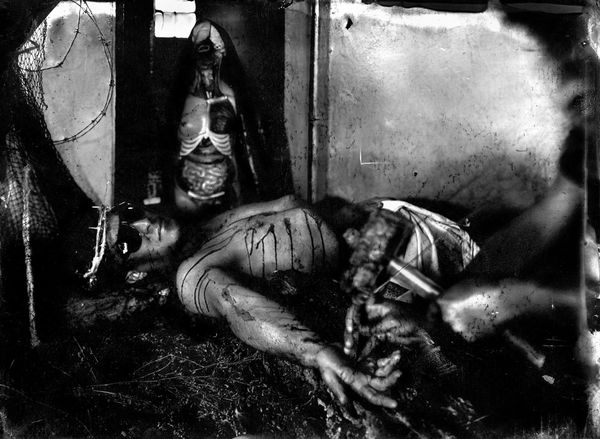 His portraits of transgressors bodies, transgressed, imagined and built from the old and new standards such as television, are sterile and plastic, silicone voluptuous, that have changed the rosary and flowers by: guns, knives, guns, skulls, dryers hair and even political demands, general allegory L