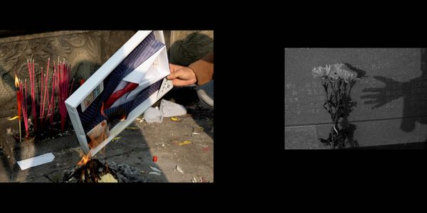Durian is a strange fruit with strong smell and harsh spines, but in fact it is soft inside. This fruit symbolizes my family members.In this project, I try to reconstruct the life of my deceased father, and to connect it with the present life of my mom and me by taking self portraits in my father's clothes and reconstructing archive photos from his time.