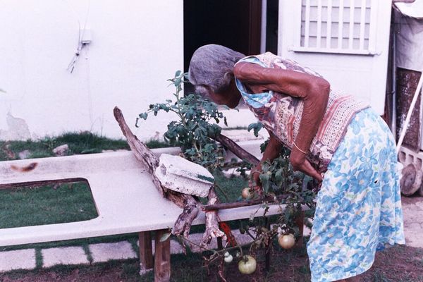 Elena moved to Puerto Rico from Hato Mayor, Dominican Republic. Today she is about to be 96 years old and still loves taking care of her plants. This day she wanted to show me her new vine of tomatos, I decided it was a great opportunity to take pictures of her before I moved out of PR. I grew up with her always having a gorgeous garden full of fruit and beautiful flowers. Unfortunately the garden doesn’t look like this anymore because of Hurricane Maria. Im glad I had the chance to document someone that has such an important place in my heart and the beauty in what they do.