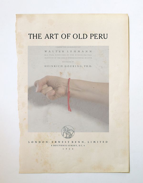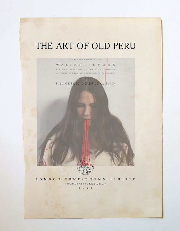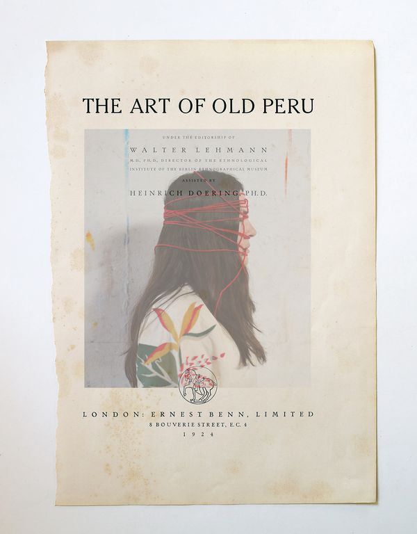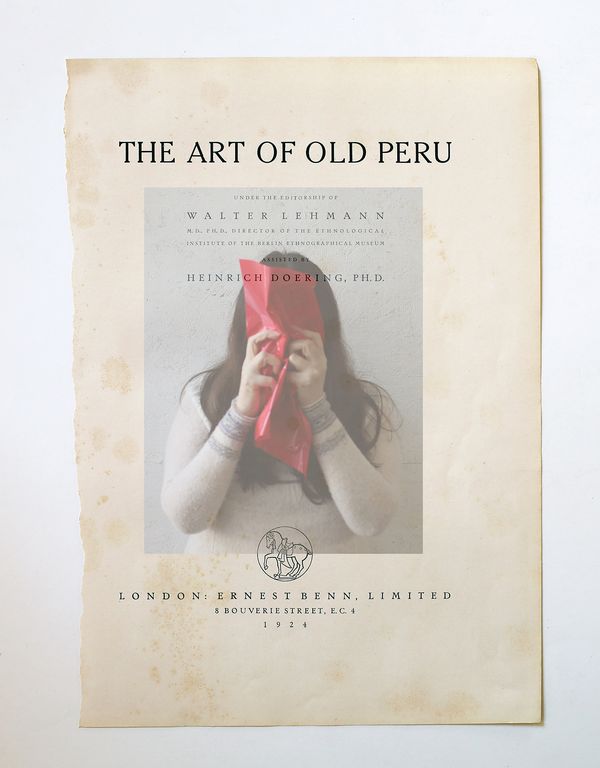 In this body of work, I insert my body in the pages of The Art of Old Peru, a publication of the Ethnological Institute of the Ethnographical Museum in Berlin published in 1924. By inserting my body in the book, embellishing pages and holding cutouts from this publication, I am interacting and in dialog with objects that now lay dissected in an institution far away from the spiritual places they were taken. This project was done in the historic Saxonville Mill established in the 1800s as a woolen mill now turned into artist studios.