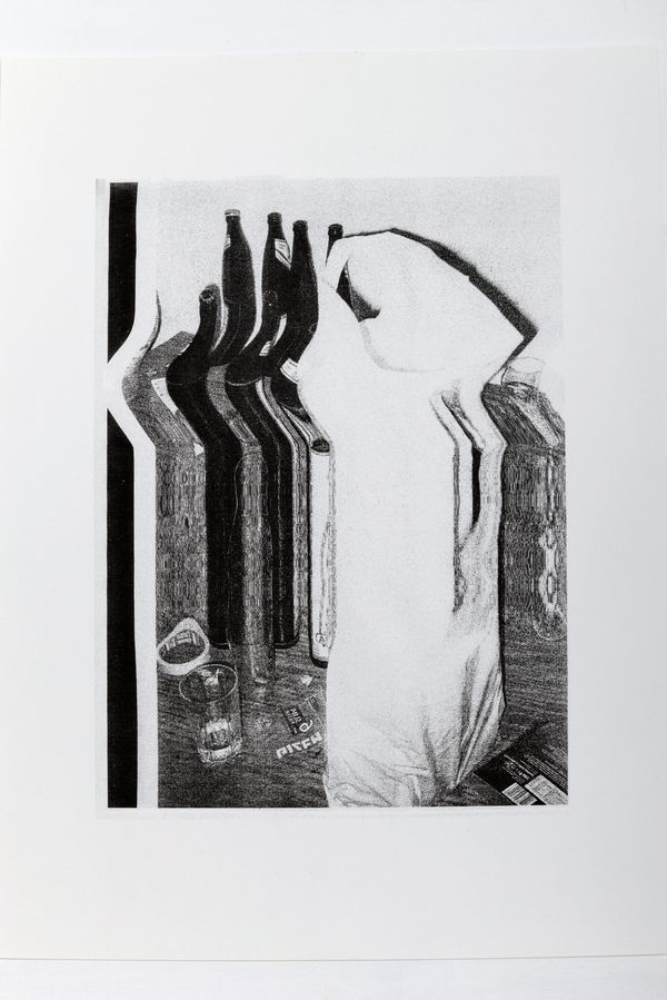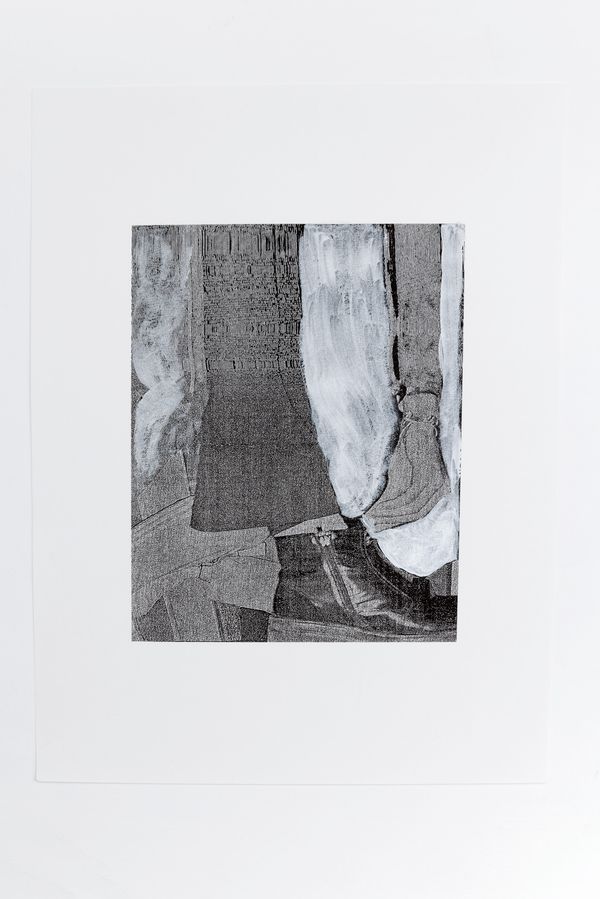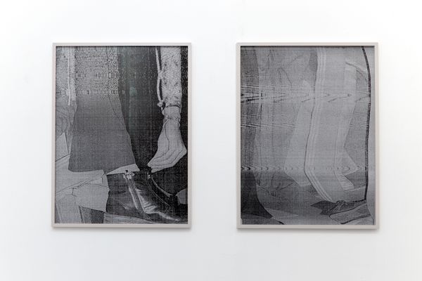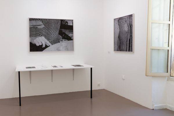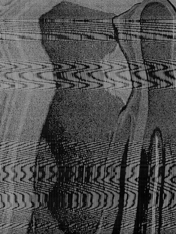 Central to the series is Jocham‘s interest is the dissolution of the photographic image. Roland Barthes once described a so called „reality effect“, an illusion of a reality or naturalness that photography creates in the viewer’s mind, also in a fragmented visualization. Questioning the photographic authenticity, she scans the negatives, prints the file, enlarges the print, moves during the scanning process and distorts the original image increasingly with each step. Nevertheless, in some pictures the original picture elements remain and only the background is given an artificial grid.