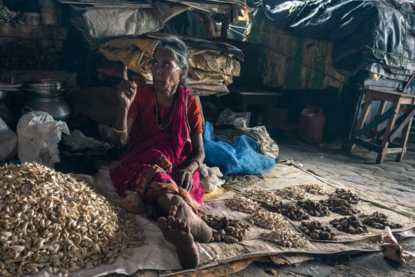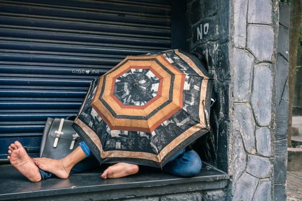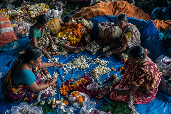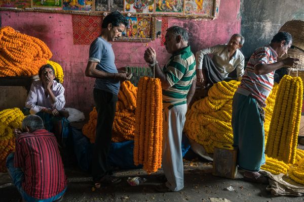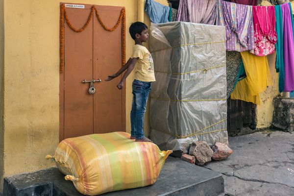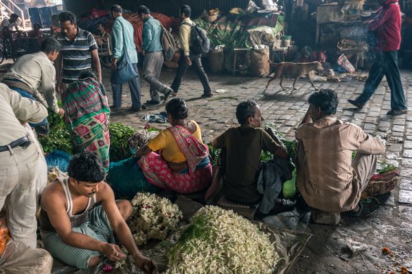 Walking the streets and lanes of the cities and towns of India has become one of my favorite travel activities. While in Kolkata, I visited many of the city's busiest markets and neighborhoods. In each area, daily life offered a kaleidoscope of color and chaotic activity in crowded spaces that made privacy seem unattainable. However, in the midst of the din and clamor of everyday life, I witnessed individuals create their own quiet private moments by retreating into themselves, joining others, or performing a daily ritual. This ongoing series attempts to capture the unexpected and peaceful beauty of these small acts of self renewal made in the midst of mayhem.