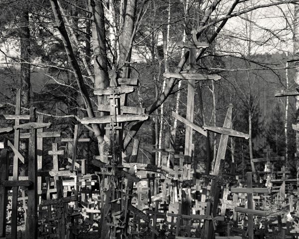A handwritten note neatly folded and hidden in the crevice of a rock, crosses etched onto stone, ribbon carefully wrapped around piles of twigs. These are all religious offerings, known as ‘Ex-Votos’ and found at Christian pilgrimage sites worldwide. Often placed anonymously and hidden from view, pilgrims leave ex-votos as expressions of hope and gratitude, creating a tangible narrative between faith, person and the landscape. Taken at Lourdes (France), Ballyvourney (Ireland) and Grabarka (Poland), the project encompasses formal portraiture, large format landscape and small, detailed still-lifes of the objects and markers left behind. Shot on 5x4, large format film, the images evoke a distinct stillness and reflect the mysterious, timeless quality present at these sites of great devotion.