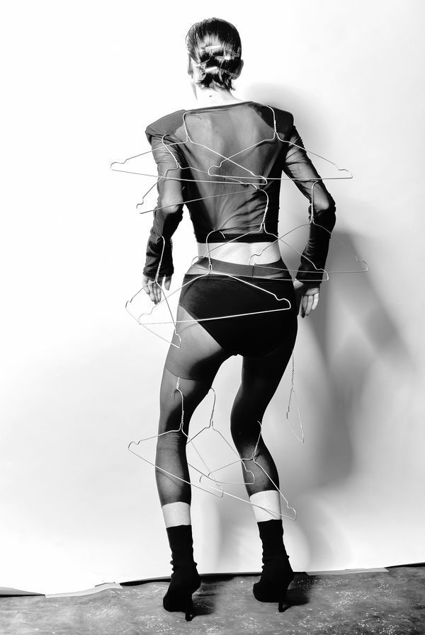 "My work has many layers and inspirations. On the one hand, it is about performing gender roles, particularly femininity, through a process of masquerade and noir-inspired drama. I like to find unconventional beauty in the ridiculous by creating staged fantasies. Having worked in construction, I often use building materials and careful styling of objects and models in my practice whilst using the fashion idiom as a playground; employing humour, darkness, sexuality and elegance in turns. My imagery employs recurring signifiers like hair, chairs, boxes and footwear as a means of making the everyday extraordinary."