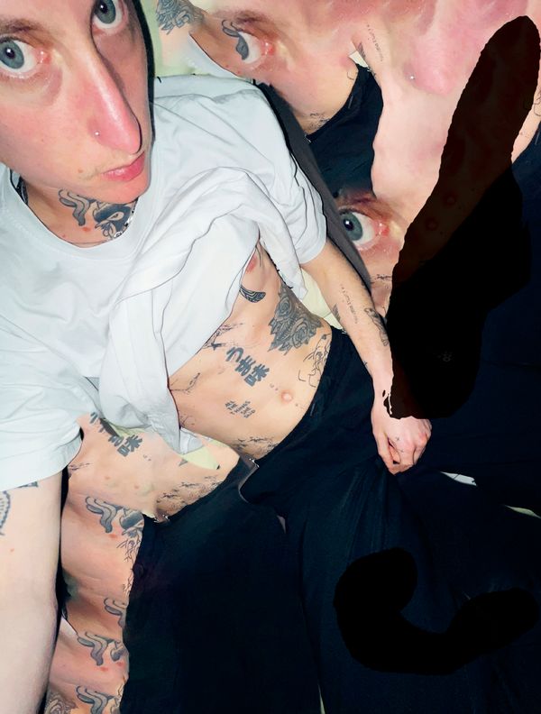 existential boner is a personal work about obsessions related to the body, identity and sexuality. it is presented as a book and an installation. mahalia taje giotto is and has always been a trans person, they chose to identify as non-binary and started their gender-affirming hormone therapy in November 2020. They monitored the changes they were undergoing, as a way of reappropriation of their own self. Doing so, photography was for taje the best way to record all of these steps, following the never ending rhythm of their compulsive thoughts. With a compilation of images and text using collages, vernacular photographies, studio shoots, iPhone snapshots, and scans, taje’s body of work evolved same time as their body to develop in a direction that is not only about identity but highlighting a feeling of urgency.