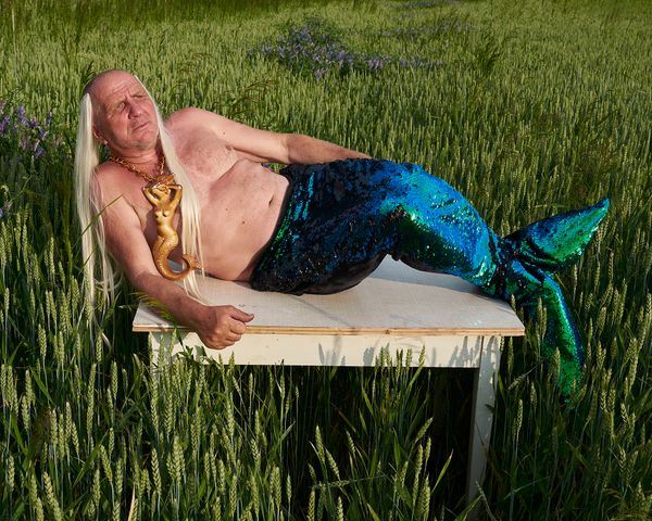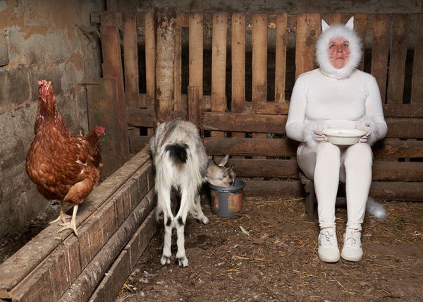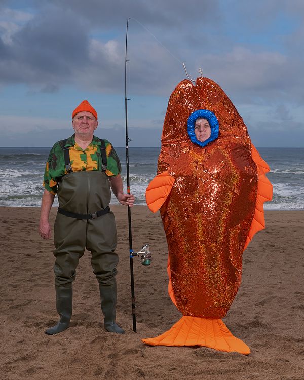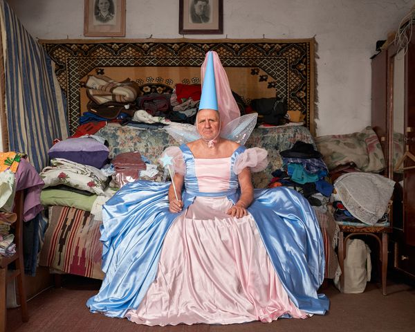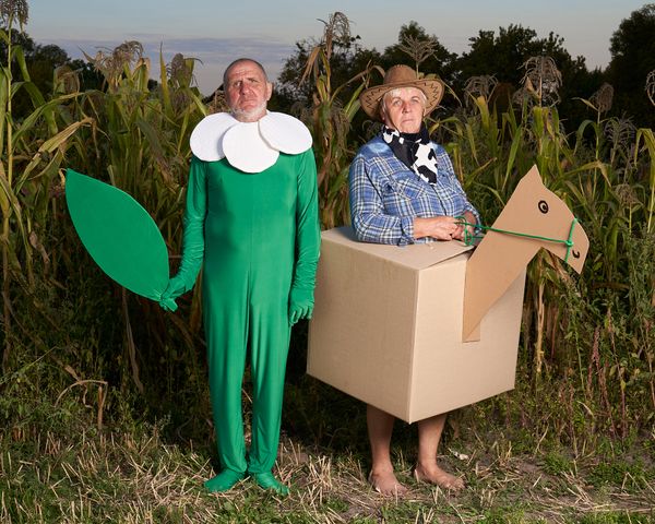 This work is a self-reflection on my childhood, when my parents used to dress me up in different costumes for celebrations. Back then, they helped me enter roles and imagine myself as someone else. Today I return this experience to them, inviting them to participate in a game with images, roles, and symbols.