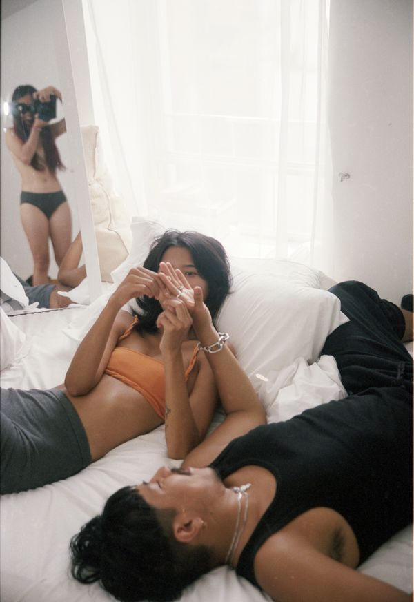means to carefully carry their trust and vulnerability on my shoulders. I want to create safe spaces through the making of the images with my subjects. The process of taking photographs can be exploitative. So, in my photographs, I try to reveal my presence as a photographer as someone who is in an equal and caring relationship with her subjects. I create safe spaces by being (in) there with my loved ones. Holding on to the sentimental power within personal and family photographs, I also think about the public, and about the social function and the exhibition value of photography. For me, the most important question is: how do we care for each other through both creating and looking at photographs? In my project, I explore the fluctuating power dynamic in photographs, and how photography creates a communal space through forming social relations among the subjects, photographer and the viewers. I photograph professional Asian models intimately with their home and family members, in contrast to their coexisting photographic identity that they