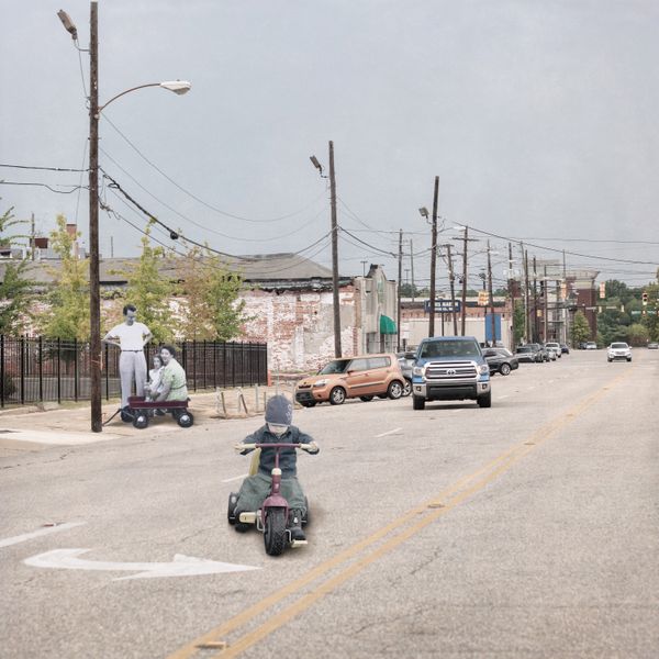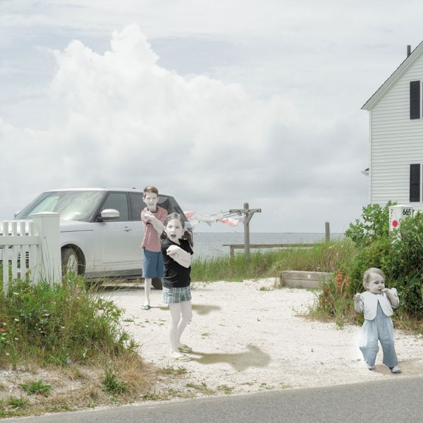 I often wish that my grandparents could see my children or struggle to understand my father's childhood as his father sold fruit from a horse drawn cart. In this series, I have put my ancestors and my children together in landscapes that have an ahistorical feeling.