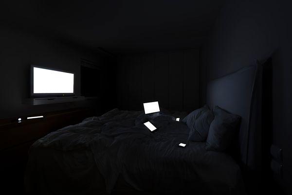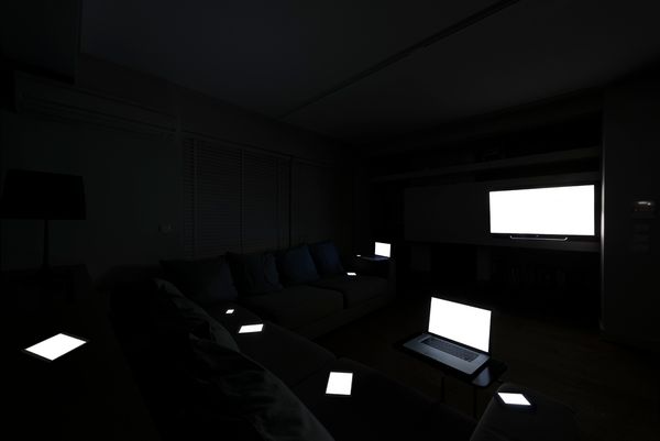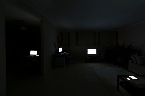 Acknowledging these facts made me look at these devices from a different perspective. In this series I create family portraits of devices, reversing the subject/object relation. In this casual scenery of our everyday life, our comfort zones this multitude of glowing immersive gates, like an opposite of black holes, promise limitless possibilities. Information, entertainment, human connection and much more, are available anywhere and anytime, breaking the physical bond with the reality that surrounds us.
