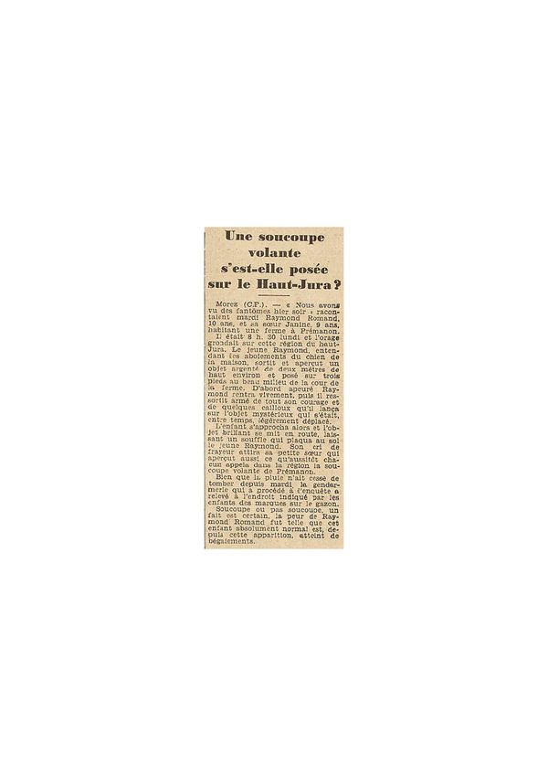 Raymond Romand, 1991, about the UFO case in Prémanon during the autumn of 1954.
