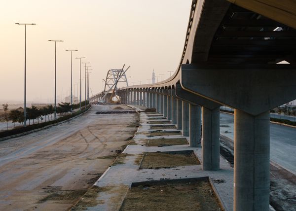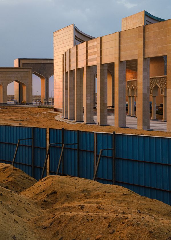 Despite prohibitions on professional photography, I documented the city's development through three trips, employing various disguises, posing as an investor or architecture student to navigate restrictions,while my official permit requests with a german newspaper were only met with "No anwsers from the superiors yet". In my photography, I highlight empty cityscapes, blurring the line between reality and conceptual designs. The architecture, reminiscent of ancient monarchies and modern dictatorships, evokes a sense of grandeur and control, catering more to vehicular transport than pedestrian accessibility.