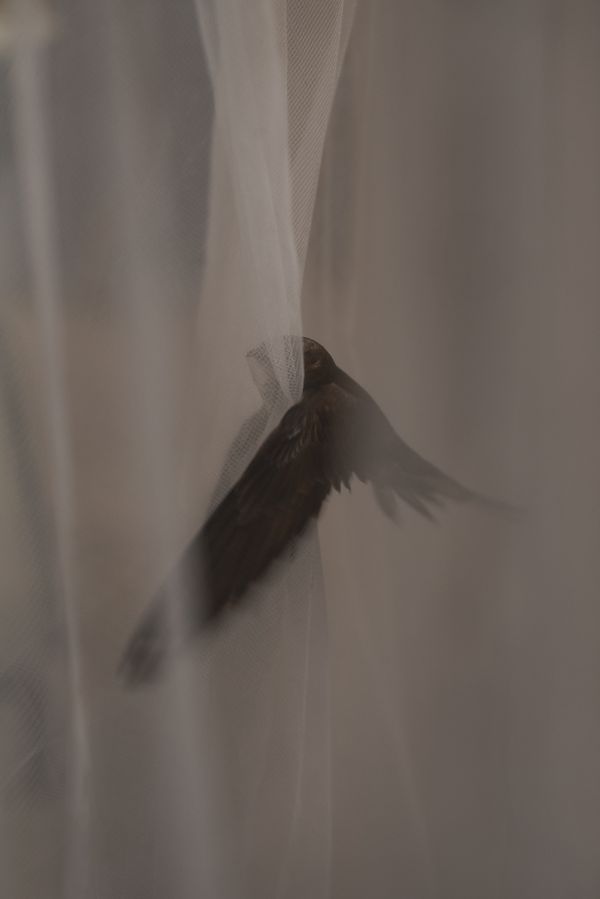 In contact with injured bodies, the space opens up for a face-to-face encounter with an animal ‘otherness’, where distances are recomposed and sometimes entirely removed. In the close proximity of this encounter with the wild animal, movements seek assurance and accuracy depending on the species. We learn to be attentive to the slight signs of an animal’s fear, watching the shelters, the linen sifting the light, the silence.
