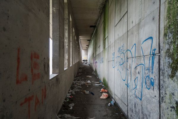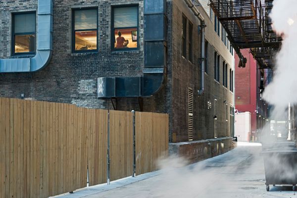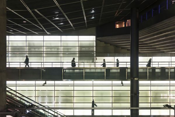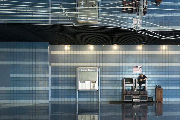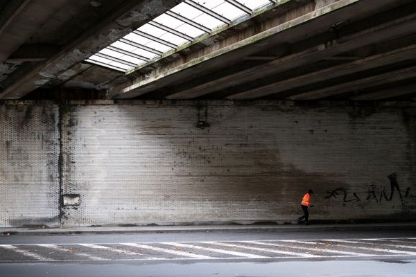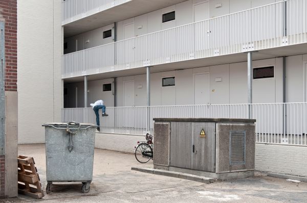 The "Figurants" series explores the interaction between man and his mostly urban habitat. This interaction can be harmonious, but will often also be uncomfortable and estranging.
