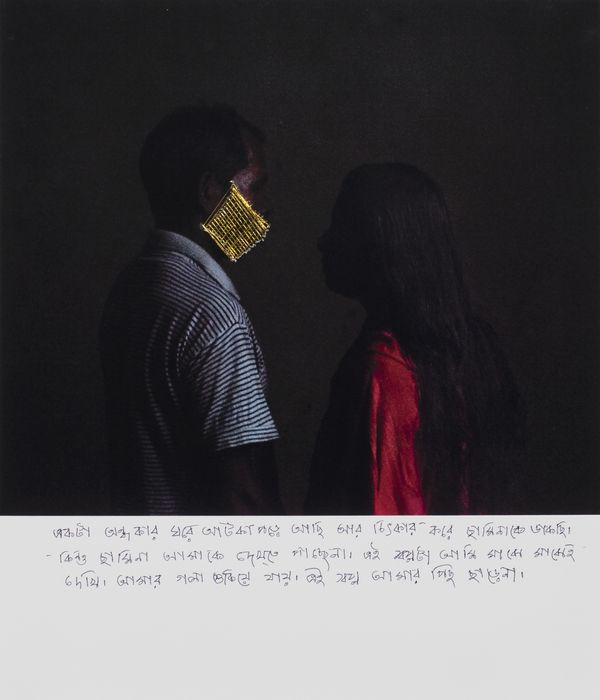My protagonists prefer to be photographed in their own space where they feel safe and comfortable with their dearest ones. In custody, different methods of torture are used, both psychological as well as physical. Though psychological torture results in more trauma to the person, it cannot be visualised, only the long-term effect is seen on the person. I try to take my protagonists through a meditative journey which may allow them to investigate their own anxiety which they kept secret for so long. Illustrating personal emotion in one’s own portrait is a process of healing. Stitching the photographs with golden thread is a symbolic representation of silence in custody.
