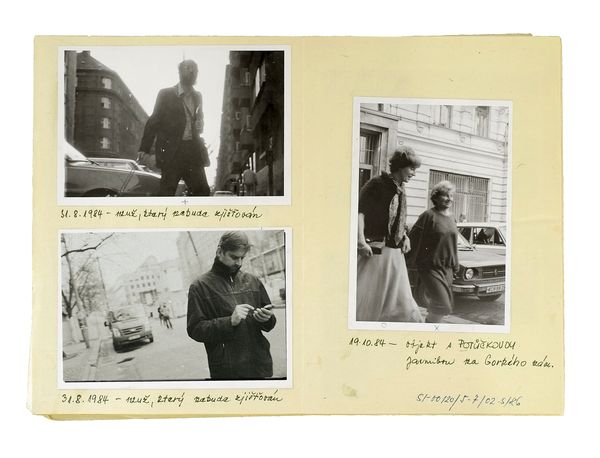 During the Communist period in Czechoslovakia (1948-89), the secret police followed indiscriminately thousands of citizens. Through a constant surveillance activity, they captured everyday moments and encounters that could potentially form a case for anti-revolutionary behaviour. The photographs were often captioned with detailed information on the place that they were taken, the date and time of day, and the people with whom the suspect had been seen.