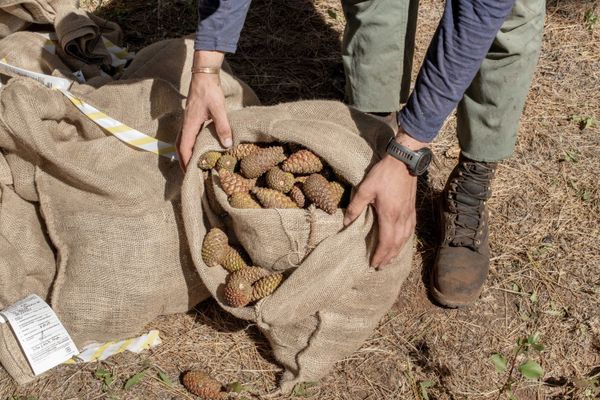 Recently, I made connections with those working to improve the Fremont-Winema Forest, which has burned six times between 2018-2021. Nearly two-thirds of the forest lost 75% or more live tree cover due to high severity fire. Two weeks ago, I followed forest crewmembers as they collected pinecones from Ponderosa pines.  While there is a small seed bank, with the unprecedented fires since 2018, there is a scarcity of seeds, and a larger supply is urgently needed.