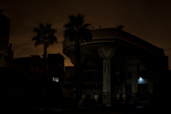 My aim was to show this normalized discomfort in its purest form, but I faced the challenge of capturing this reality as a photographer in the dark. I used the technique of light painting, just to give the shape of the city amidst the complete darkness, but also enough to show that these are not ghost towns -- these are populated urban areas that are fully alive.