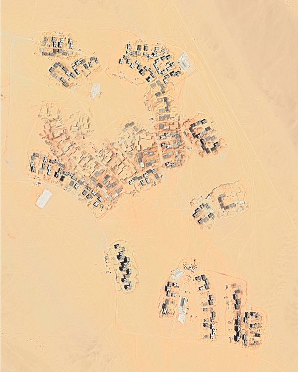 "Geography of Domination" is a poetic attempt to observe the materiality of human violence through the analysis of satellite images. The strategies of controlling resources, territories, and populations leave profound marks on the ground, to the extent that the world's violence can be read in the absence of humans, by examining the earth's contours and the scars left on the surface by bombings, excavations, fences and walls. These images, bordering on abstraction, blur the boundaries between large and small scales, prompting questions about the ability of new technologies to render the world more intelligible. The documentation of the images, written in collaboration with specialists, anchors these abstract images in reality.