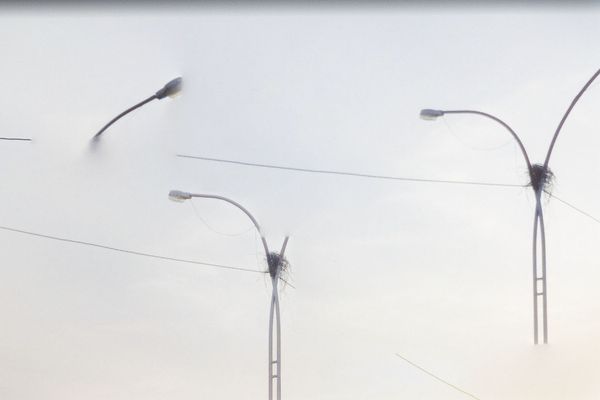 Google Earth’s photographic system — composed of 12–15 cameras shooting simultaneously — produces a 360-degree view that appears total, seemingly objective. Yet it is precisely in the space between one camera and another that my interest lies: an error, a fracture within the image, a distortion.