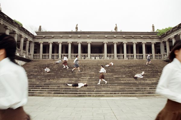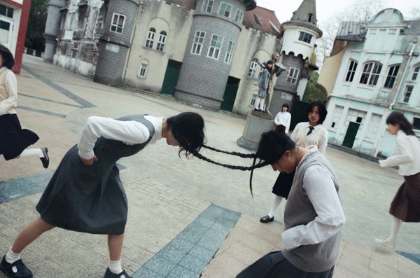In Girl’s Town, Lean constructs a serene yet storm-laden visual fable, set in a paused cityscape where overcast skies hang low, heavy rain is imminent, and the air is thick with humidity. The girls move like ghosts within, their bodies both light and heavy, suspended at the critical point between transformation and collapse. Similar to White Noise: The Reincarnation of the Pure, the composition presents an almost ritualistic aesthetic control; however, the former expresses an outward confrontation with desire and violence, while Girl’s Town is an inward folding of consciousness, offering a deeper analysis and reinterpretation of the cultural symbol of “purity.”