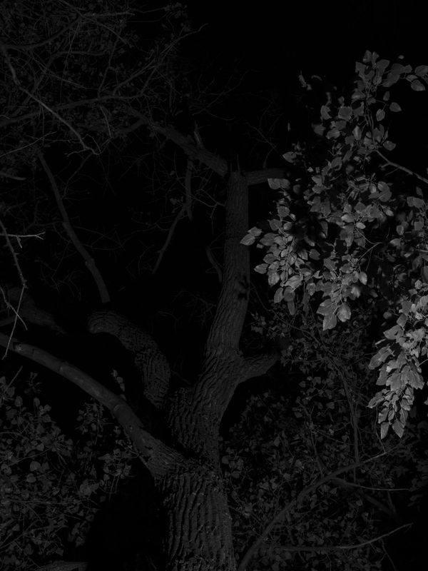 My seires, glimmer, involves photographing trees in Chicago at night using artificial lighting to investigate the sensory and psychological dimensions of darkness. I explore darkness' capacity for stillness and introspection.