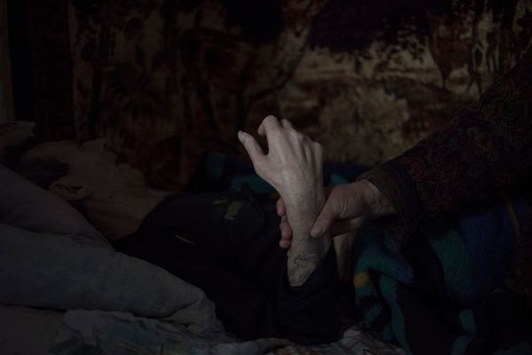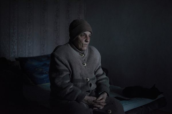a person completely immersed in the darkness of the unknown in the face of war. This is