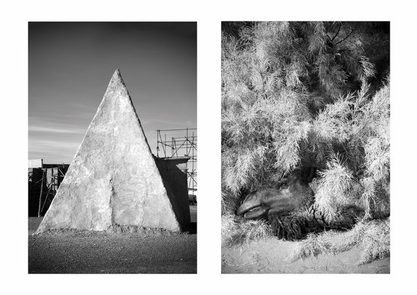 The tree, it color is hardly detached from the sand that surrounds it. The absence of vegetation creates tone uniqueness rarely observed between habitat and nature. The tombs of rubble, the cemetery are stones laid on the sand, everything here is humble, in detention. The pathways collide back toward their shared point of origin, an endless desert that one might think to abandon. A trickle of water mocks the thirsty hills, barely a drop. The delay of the rains face a sky obstinately blue.
