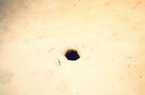 A pink sunset’s sky and there is dust everywhere, a village of clay. The houses have a pyramidal form due to the decreasing thickness of walls. Erosion creates a pattern, repetitions of small symbols. There was this black hole in the middle that fascinated me. One unrelenting sun to the zenith.