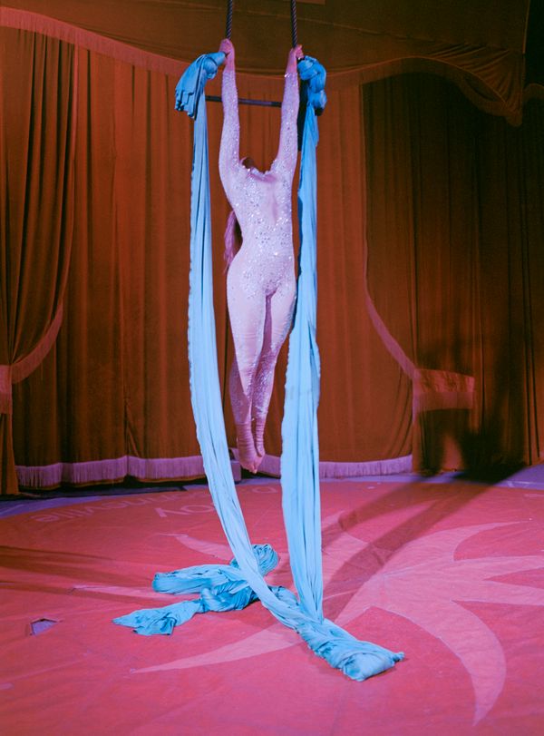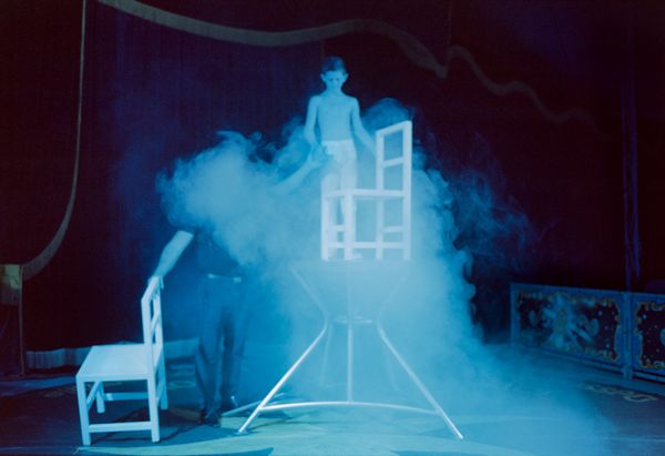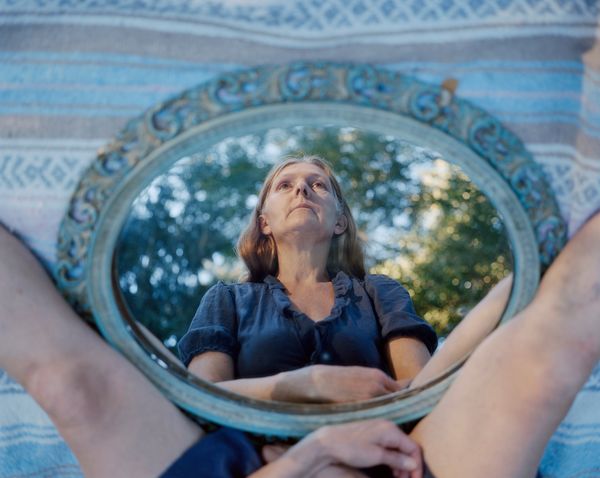 As I have further explored my family's history and other figures, such as my great-grandfather, emerge, a similar theme occurs: an engagement with art and performance as a means of channeling a personal alignment with spirituality. In Guillemette, I explore the channeling of mediumship or ‘seeing’ through the act of image-making. My process has consisted of speaking with mediums, writing down dreams, visiting occult spiritual sites and reading through family archives to conjure visions for photographs. The photographs, once they are made, become keys or messages to unlock the creation of new photographs and new meaning. In the series, there is a photograph of an old woman in a park reaching towards her eyes, to the right is a photograph of a detail from a painting of two angels extending their hands, bathed in the light of the forest canopy, and a few images away is an individual, painted white, lying contorted in a spotlight on a black backdrop. Having these three ‘types’ of images alongside each other create a multi-dimensional world of images that speak to reality, memories or dreams, and complete fiction or performance. Guillemette, navigates the misty passages between the real and the imaginary in mediumship, photography, and in family history itself.