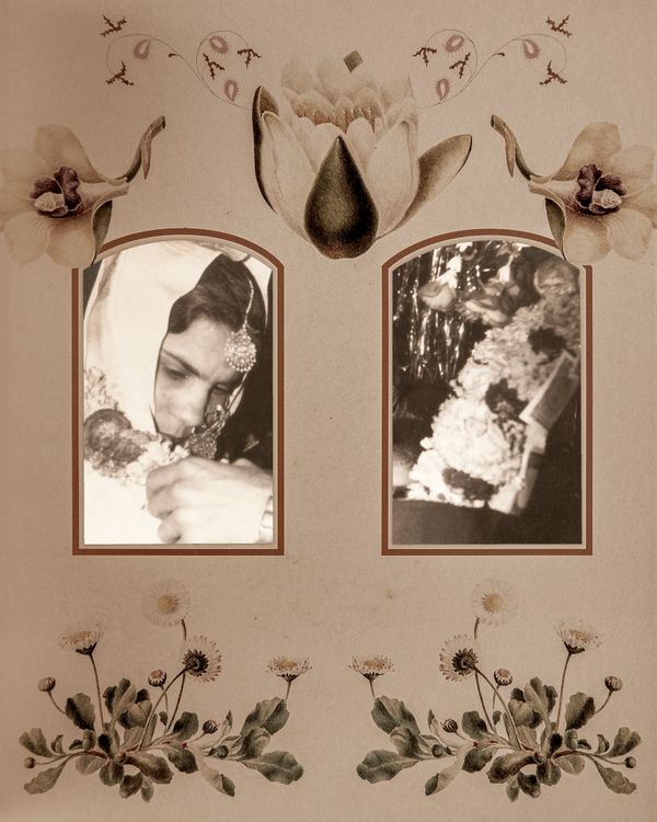 Women have been often described or imagined as homes, a space one feels safe and sound. But women, more often than not, get trapped in the domestic setting, an ordeal of stereotypes. Revisiting family archives, with images made in and around homes, a space for them to dream and be themselves. Captured in these photographs, women both express and camouflage themselves from these confined roles. Using windows as a metaphor into their everyday, soundly adorned by flowers, 'Gul-posh' looks at the rosy picture of women looking outwardly, an escape from these roles. These letters to the past after long silence— itself caught between representation and fabrication — seems the archetype medium to illustrate the predicament.