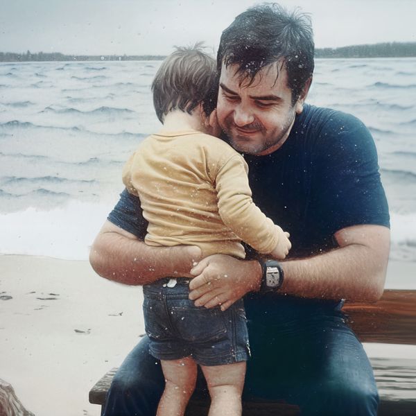 The images of this project portray my father Giorgio and my son Ulisse while playing and sharing moments and experiences. But these are false memories. My father passed away five years prior to my son’s birth so they never got to meet. In 2023, tenth anniversary of Giorgio’s death, during a phase of discouragement, I wanted to create this small family album that combines authentic and artificial photographs, the latter created based on the real ones.
