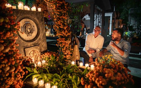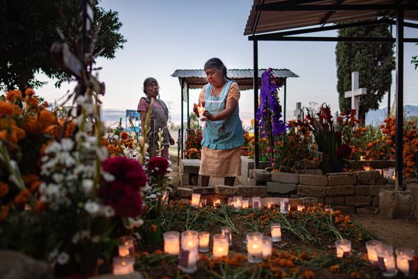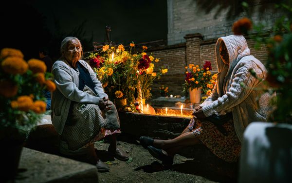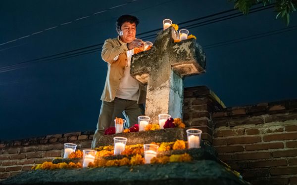 Hearing to the Pathway of the Dead is an ongoing photographic project made in Oaxaca during nights of remembrance. I photograph the hours when families gather with candles, flowers, music, and quiet care, creating a space where the living and the dead feel close.