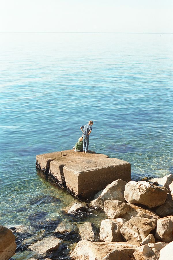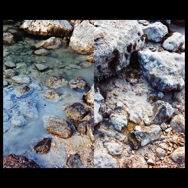 Growing up with divorced parents, those photographs left an imprint that words often failed to capture but other images could express. I began digitising the archive and revisiting the places of my childhood to reconcile with an environment I had left in my early twenties. The political borders around natural entities in my birthplace echoed my sense of being split. The Soča-Isonzo River, flowing from Slovenia to Italy, helped me connect the bigger dots, and I followed its path from source to mouth, observing the state of its water and collecting stones along the way.