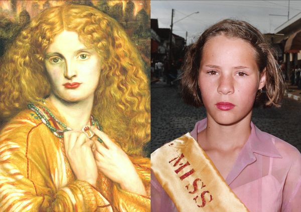 Years later, I became the aunt of a girl with straight blonde hair and green eyes. Observing how she also receives this differentiated gaze in public spaces, I recognized the same patterns I had experienced repeating themselves. This cycle led me to reflect on the figure of Helen of Troy, whose splendor was said to be capable of sparking a war — a powerful metaphor to understand how European beauty standards were imposed on Brazilian society and how they continue to be perpetuated.