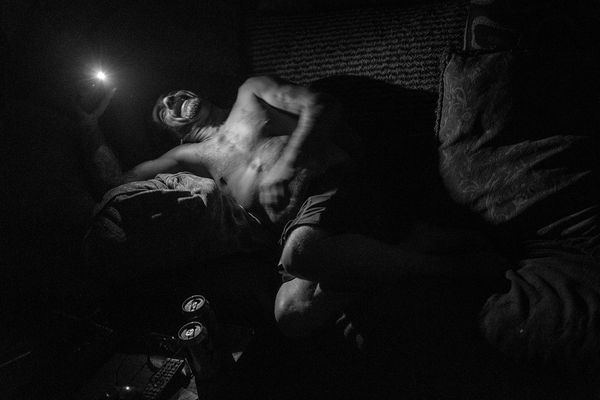 Similarly, HELLBENDER tells the complex, often contradictory stories of more than two dozen people from Sand Mountain, a sandstone plateau in northeast Alabama infamous for extreme poverty, poultry processing plants, Pentecostal snake-handlers, and meth production. In the project we meet Chico, an ex-convict, meth dealer, and self-proclaimed member of the Aryan Brotherhood; Ryan and Alice, a young runaway couple on the brink of a lifetime of addiction; LaShay, a young mother subjected to routine domestic violence; Willow, a transient, chronic binge user; and Fred, a long-time user who lost everything he owned in a house fire.