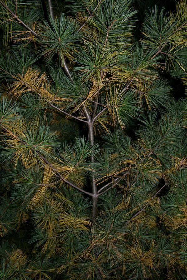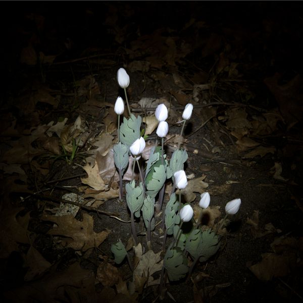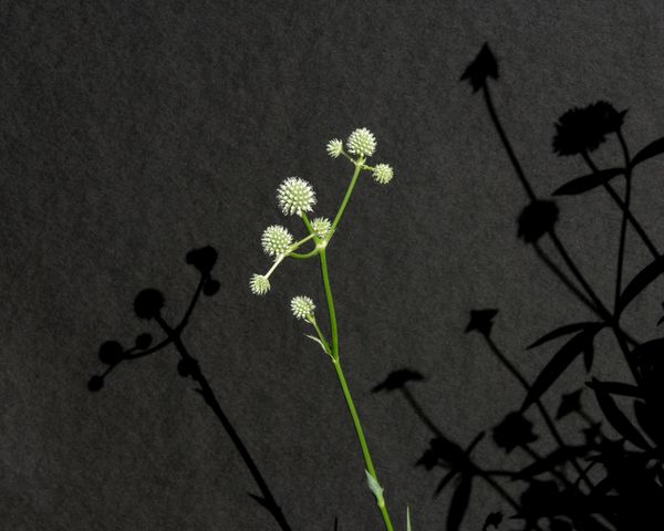 In the photographs, flowers bloom and ferns unfurl in continuous renewal, while hands reach out in longing and people freeze in melancholic thoughts. Trees and branches break, dying a sculptural death, more beautiful than when they were whole. Subjects surface from the darkness and float on the surface. Nature feels displaced in the dark night, artificially lit by the flash, presented as evidence. Shadows have more presence than the objects that cast them. The flowers that bloom in the summer don’t last as long as I hope, while the tree that split apart years ago still stands outside my window.