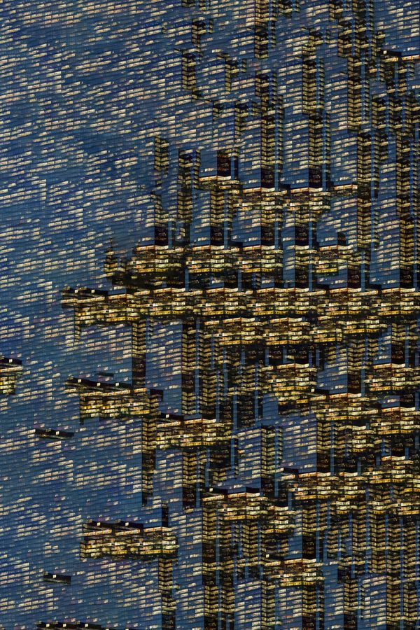 [...] The illusory nature of Jasak's work shows clear inspiration from the art of Michael Wolf, Andreas Gursky, op-art and surrealism. The works are based on existing elements, but they create an imaginary and unreal world, perhaps ahead of its time, perhaps this is what the city of the future will look like, since technology practically not only makes it possible for us, but also shows us the way. The multiplication in the photographs tires the eye, just as life in great metropolises tires its inhabitants. Looking at the history of great buildings from pyramids to Gothic temples, they were all built anonymously to honour the Gods or leaders with a divine role on earth. They were also emanations of a certain political order. Skyscrapers today can be seen as pyramids or cathedrals of capitalism, in which the sacred is combined with the profane. After all, capitalism may have become a religion and it has become an essential value for many people for whom material property is paramount or equal to spirituality. At the same time, the attempt to strive for perfection, to be first and best has always characterised the human species. This is why one gets the prize for first place and not just fifth place. The drive to conquer, to take over territories, to pivot in a world of competition is a characteristic of the followers of capitalism. And their temple will be the very skyscraper that stimulates in us the spirit of material values. Cathedrals and pyramids were meant to glorify and dazzle; today's skyscrapers fulfil a similar role. Mostly, however, they emphasise the dislocation, the lack of stability and balance, the pursuit of accelerating technology and wealth, which leads to exhaustion and brings upon us the plagues that we de facto generate for ourselves. The artist explores how urban planning influences people's lives, especially in the dimension of globalisation - after the industrial revolution and the technological advances that followed it. Architecture all over the world seems to be moving in the same direction, while the historical, traditional one is becoming a refuge for us and a symbol of the development of civilisation. An important element of the exhibition is not only to compare these two worlds, but also to lead us to contemplate them and find our own balance. Progress cannot be stopped or reversed, but it is possible not to lose oneself in it completely - by finding beauty.