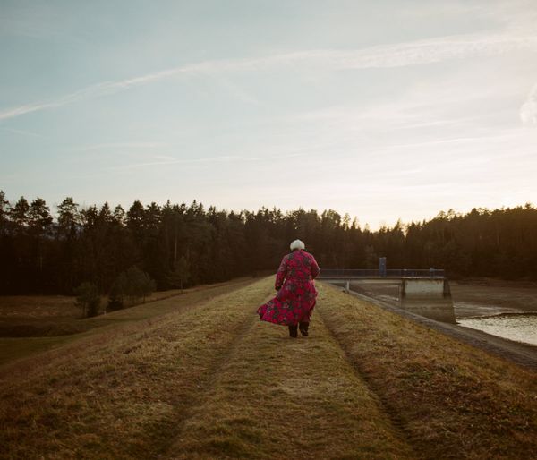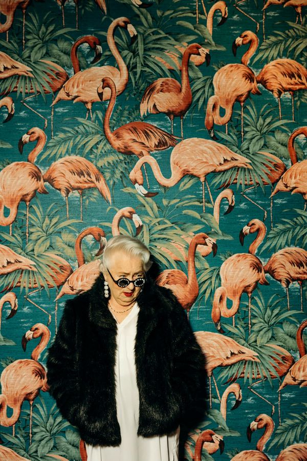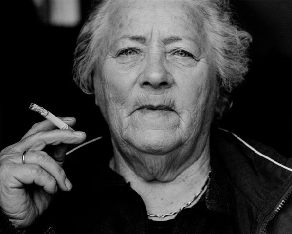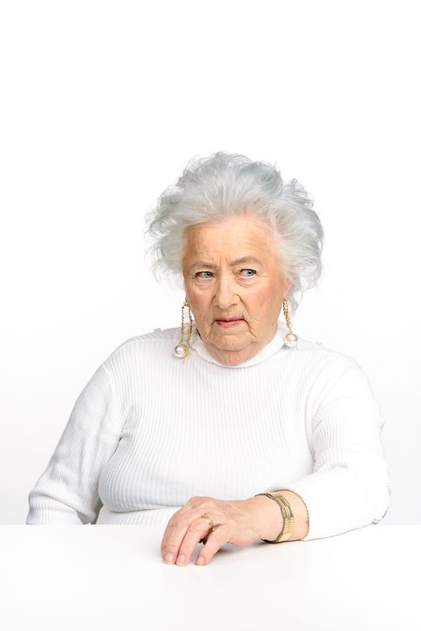 Super Hilda is a work in progress in which the photographer Urša Premik keeps upgrading and adding to her ongoing portrait photography project involving her grandmother Hilda. Since her first portrait of Hilda was captured in 2013, photography sessions have become a customary way of their spending time together. The first documentary shots of the grandma’s everyday life have gradually been complemented by staged photographs with a more clear-cut narrative structure, evolving in the latest edition into fully controlled scenes imitating fashion features. The photographer intentionally places the object of her fascination in environments and situations that elicit a range of reactions. Covered in cloaks and coats, Hilda occasionally turns into Super Hilda, an eccentric and characterful heroine who possesses the supernatural power of old age and, a cigarette in her hand, embodies the antithesis of, deviation from, and objection to the expected beauty standards. Through a collage of spontaneous and staged images, she speaks of her grandma from a fully personal point of view, allowing the viewer to witness Hilda’s numerous transformations. The result is a subtle, thoroughly playful portrayal that avoids the stereotypical depiction of the elderly and challenges the dominant fashion trends and illusions of eternal youth.