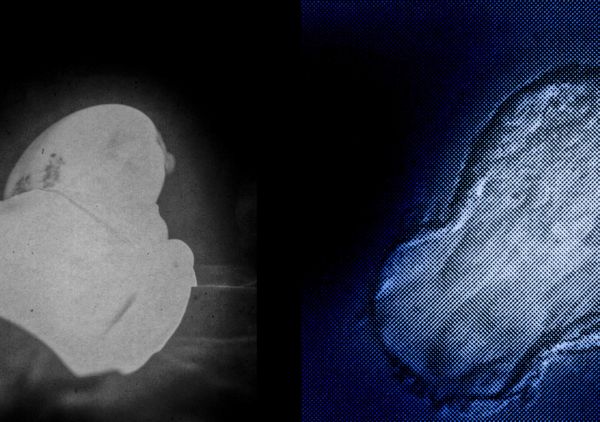 For the process, I use Direct Positive Paper, and I work with a 4x5 inch camera. This method allows me to control the exposure to recreate the time of an examination at an IVF clinic.