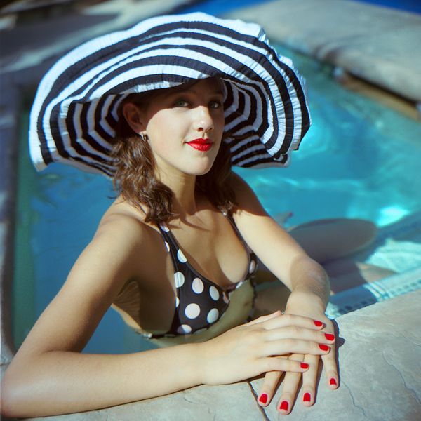 Eventually, I set out to make my own portraits, inspired by the Technicolor images of the nineteen-forties and fifties. I would re-create the look of these vintage publicity photos, but use ordinary people. I recruited men and women I know—family, friends, even a nurse I met during a hospital visit—to join my casting couch. Working alone, with my nineteen-sixties twin-lens Rolleiflex, a single hot light, and some red nail polish and lipstick, I discovered that my subjects were happy to participate in their artificial glorification. I wondered if, through this series of images, I might elevate them into a false stardom—to make them seem, through a trick of my lens, right on the verge of being discovered.