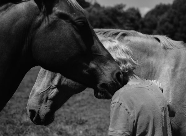 ‘Horse Girl’ explores the complex and emotional relationship between humans and horses. This project looks at intimate moments of connection and trust between Mariah and her horses, where she almost becomes another limb for them, supporting and connecting. Inspired by classic depictions of cowboy culture and the natural beauty of horses, I was drawn to Mariah as a subject to explore the balance of masculinity and femininity within her. The interaction between Mariah and her five horses is one of deep emotions and fragile connections embodied in an animal that endures so much strength and grace.