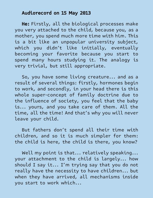 I keep a diary. I record all discussions. I’ll put everything in a book. And I will give it to him. And it will convince him. I know it will».