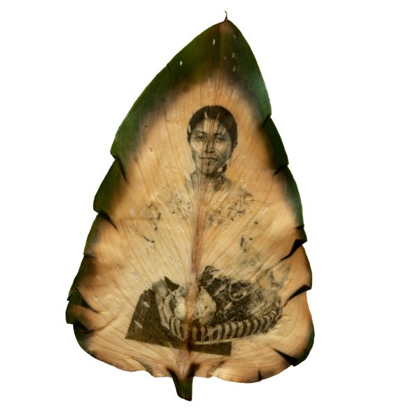 A dialogue between woman and land—portraits printed with light on leaves, revealing bonds of identity and resistance