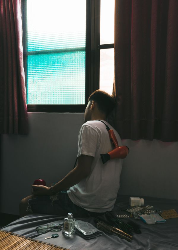 Kairon Liu started his research with HIV in 2017 in Taiwan. The inspiration for Liu's project, Humans as Hosts is his best friend, alias Tree, who has recovered from betrayal and sorrow several times due to his affliction. The photographs and archives created by Liu and the participants he encounters through his daily life and practice make evident that all human beings are exposed to the virus. We are all human beings, and we continuously face this threat, physically and/or mentally.