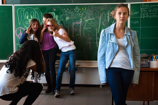 It is this kind of representation, now spreading widely on social networks, that photographer Bénédicte Vanderreydt beautifully captured with Valentine, who lives in Brussels; with Ru'a, who lives in the Dheisheh refugee camp in the West Bank; and with Loraine, who comes from Lubumbashi, in the Democratic Republic of Congo. Her film I am 14 is a succession of images characterized by slick aesthetics and saturated colours, as dreamlike as those by the American photographer Gregory Crewdson, which they evoke down to their hyper-controlled composition. They create a subtle play of mirrors: a group of girls take pictures on a roof, in a pool, in the middle of the school's corridors, as they do every day, maybe even every minute. But the heroine looks at the photographer, and thus at the viewer, as if to say: “Look, this is my life.” She takes us to task, boldly showing that she is not fooled by a circus orchestrated by others, nor by the picture composed by the photographer; thus she regains power. Isn’t that what adolescence is all about, desperately wanting to belong to the group and yet stand out at the same time?