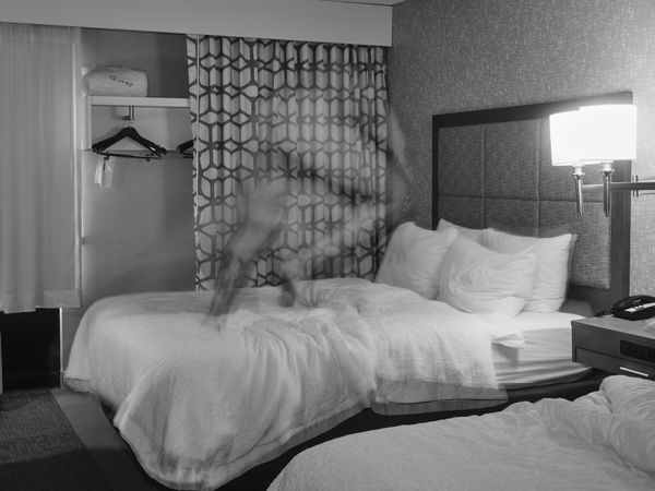 The pictures in Taylor Galloway’s “I Can Feel You Dreaming” are glimpses of things, sometimes slippery, peripheral, brief, furtive shadows in the margins; they’re slowly unraveling threads that you can’t quite follow back to anything, but that nonetheless feel like clues, pieces of a forensic puzzle; they’re trance visions, or something you briefly noticed while looking for something else. Perhaps they remind you of channel surfing through the foothills of sleep as you toss and turn in a motel bed, slowly emerging from a fever dream or hangover. They’re a sort of Rorschach test, fragments in one of the millions of landfills in the universal subconsciousness. They’re a note you find next to your bed in the morning, mysterious, undecipherable words in vaguely familiar handwriting. They’re a garden of forking paths, the start of a journey that has no clear beginning or end, beyond sleep.
