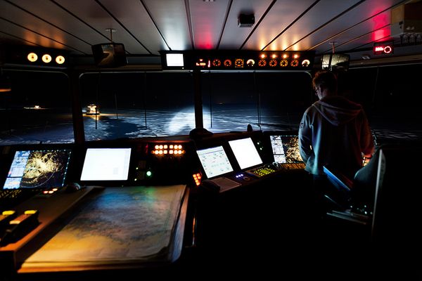 is like another planet, the one where they live, proud of the scandinavian cold weather. They love their job, because they feel like they are between a child getting pleasure from ruining sand castles and a fireman responding to emergency calls for people in need of help. This powerful ship, sailing from Örnsköldsvik to Luleå, assists international shipping to reach ports in the northern section of the Bay of Bothnia, across seas which are often frozen for six months a year.